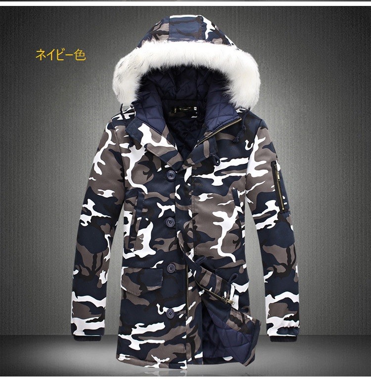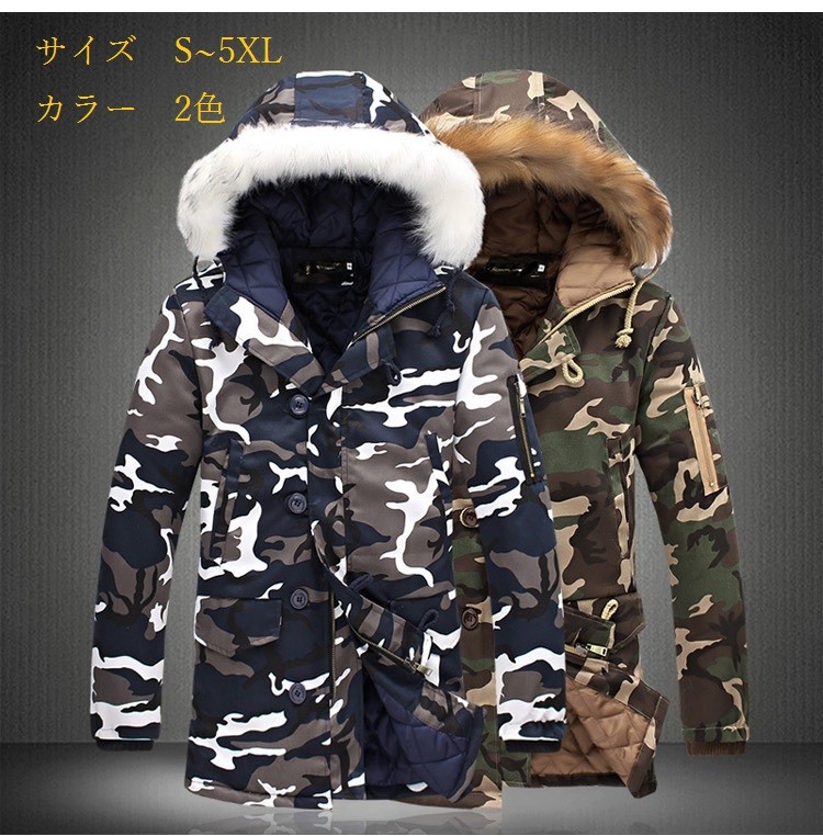 メンズ中綿 フードつき ミーディアム ロングコート メンズ 迷彩柄ジャケット中綿コート ジャケット 大きいサイズ 防風 防寒