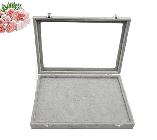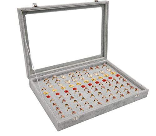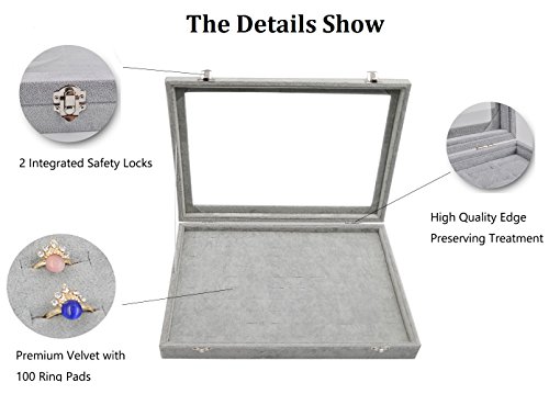 Wuligirl Ice Velvet 100 Slot Ring Jewelry Box Case Storage Organizer Rings Stackable Detachable with Glass Top and Lid Lock Christmas Gift for Women Girls(100 Slot Rings Box)