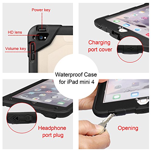 Waterpoof: IP68 certified, fully body sealed design enables iPad mini 4 submerge to underwater 6.6 feet for 2 hour without any water damage