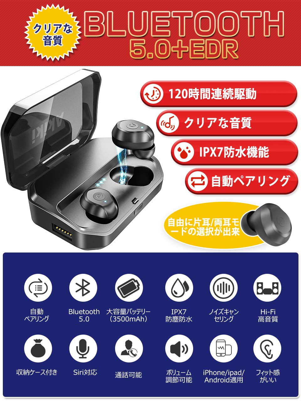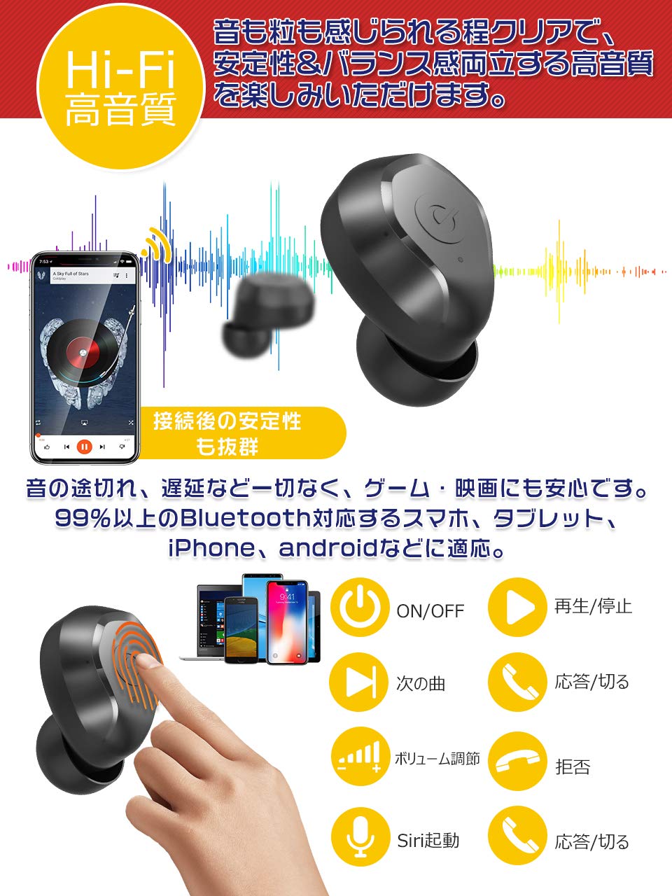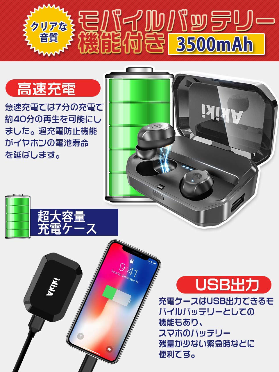 3500mAh超大容量充電ケース:充電機能搭載のコンパクトな収納ケースは、イヤホンを使い終わった後充電ケースに収納して自動的に充電が行われます。