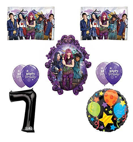 -. Feature : (1) 34" Giant Black Number 7 Foil Balloon / (1) 31" Disney The Descendants Portrait Foil Balloons / (2) 24" Rectangular Disney The Descendants 2 Group Foil Balloons / (1) 18" Black Balloon Jubilee Foil Balloon / (4) 11" Purple and Lavender Sparkle Latex Balloons