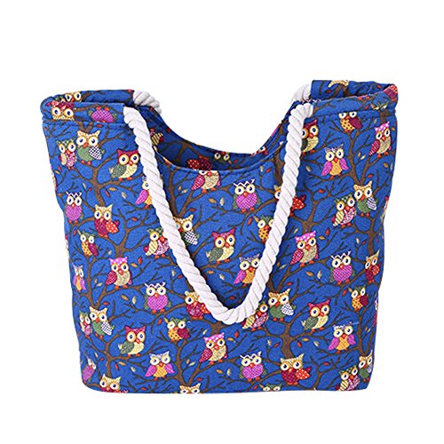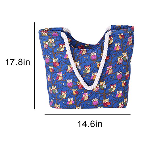 Naovio Women Owl Print Shoulder Bag Canvas Tote Handbag for Beach Travel Shopping