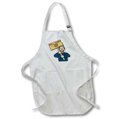 3dRose apr_117141_2 Funny Humorous Man Guy with a Sign Will Work for Pie-Medium Length Apron with Pouch Pockets, 22 by 24-Inch