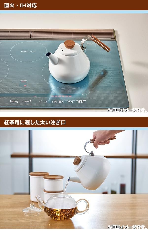 | 紅茶をおいしく淹れる秘訣となる、「茶葉のジャンピング」に必要な空気を多く含むお湯を注げるように注ぎ口を太くしたティーケトルです。お湯が一気に出過ぎないように内側の注ぎ穴の形状を工夫しています。 |
