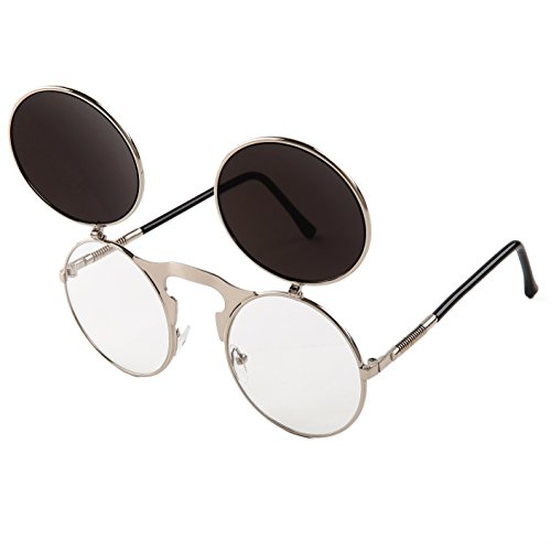 Sunny&Love Small Retro Steampunk Circle Flip Up Glasses / Sunglasses