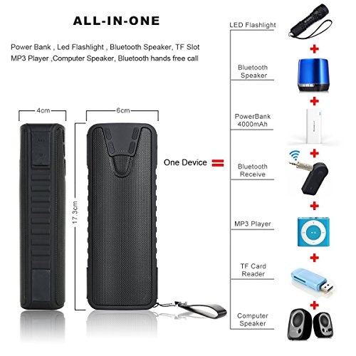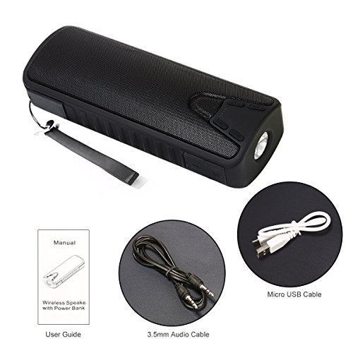 -. Feature : Indoor Outdoor Wireless Bluetooth Speakers perfectly compatible with iPhone 7, iPhone 7 Plus, iPhone 6S, iPhone 6S Plus, iPhone 6, iPhone 6 Plus, iPhone 5C, iPhone 5S, iPhone 5, iPhone SE, iPad Air 2;Samsung Galaxy S6 Edge, Galaxy S6, Galaxy S7, Galaxy S7 Edge, Galaxy S5, Galaxy Note 4, Galaxy Note 5, Galaxy Note 3, Galaxy Note 2; HTC, Sony, LG, Huawei, Xiaomi and most Android cell Phones, Windows Phones, Bluetooth enable devices, Tablet PC, and Laptop, Desktop PC. / 10W Drive, Louder Speakers, Good Bass Sound. Built-in 40mm dual speakers for outdoor, waterproof, dustproof ,shockproof, red design for harsh environment, black color. (Note: This Bluetooth Speakers with Common Water Resistant Function, But Not 100% Waterproof.) / Built-in Microphone for hands-free speakerphone; MP3 TF card slot, playing songs in MP3 format which saved in TF card; 3.5mm audio slot supports 3.5mm audio cable connection, support any devices with 3.5mm audio port. With a durable wrist strap too, convenience to carry for outdoor survival travel. / Built-in rechargeable 4000mAh lithium ion battery = 4000mAh Power Bank, you can charge your mobile phone via USB cable, Built-in LED Flashlight, 8-15Hour Playtime, 66-Foot Bluetooth Range (free place). / 100% QUALITY WARRANTY: We offer 7 DAYS FREE RETURN,If you do not like this Bluetooth Speaker,please just return it for a full refund or a replacement.Any questions please feel free to contact us, 100% customer satisfaction is our goal.