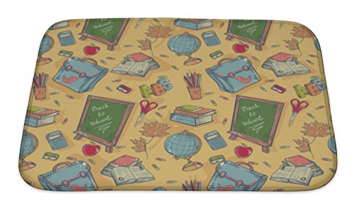 Gear New Back to School Pattern with Various Study Items Bath Rug Mat No Slip Microfiber Memory Foam