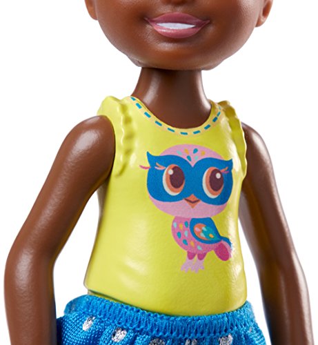 -. Binding : Toy -. Brand : Barbie -. EAN : 0887961523676 -. Feature : Chelsea doll and her friends can play out so many fun stories! / Six adorable dolls each wear bright colors and have an accessory / Added diversity and more variety in looks and hairstyles provide infinitely more ways to spark imaginations / Includes doll wearing fashions and accessory / Collect them all for even more exploration and fun possibilities -. Label : Mattel -. Manufacturer : Mattel -. Model : FHK93 -. MPN : FHK93 -. NumberOfItems : 1 -. PackageQuantity : 1 -. PartNumber : FHK93 -. ProductGroup : Toy -. ProductTypeName : TOYS_AND_GAMES -. Publisher : Mattel -. ReleaseDate : 2017-08-22 -. Studio : Mattel -. Title : Barbie Club Chelsea Doll, Owl Graphic Outfit -. UPC : 887961523676 -. Warranty : No Warranty