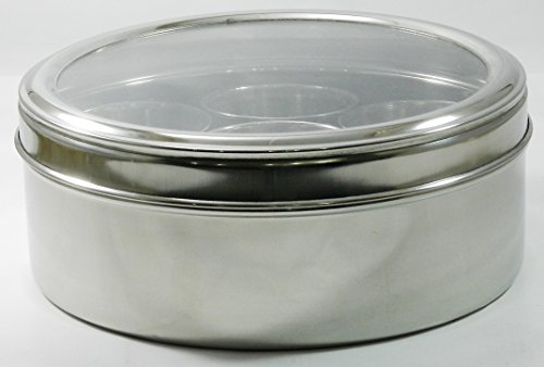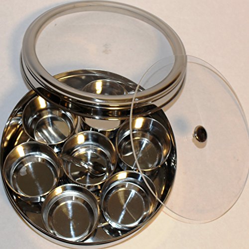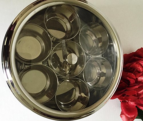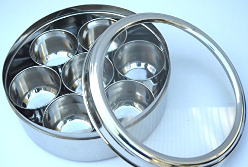 -. Feature : Stylish with Superior Quality Stainless Steel for storing Dry Fruits/ Spice box / Stainless Steel Crystal Finish See thru Glass Lid / Seven individual Stainless Steel containers and 1 spoon / Can be used for dry fruits / Spices etc / Dishwasher safe