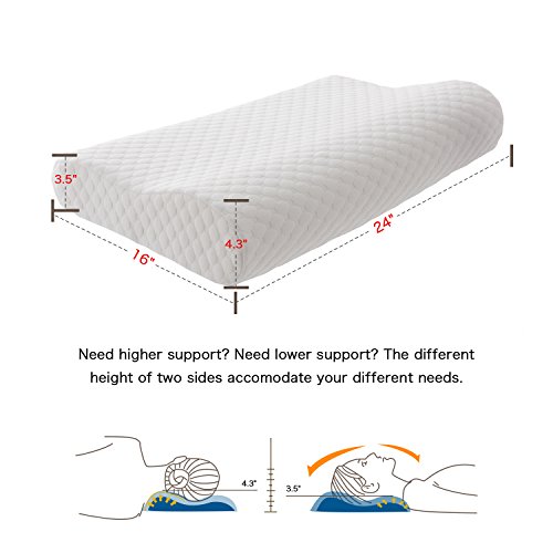This orthopedic curved memory foam pillow complies with human nature curve and makes breathe smooth thus reduces snore. Slow rebound memory foam reduces pressure on the head and neck.