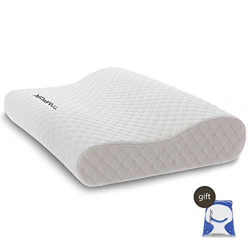 Memory Foam Contour Pillow Hypoallergenic Neck Pillow for Sleeping by TAMPOR, Extra Gift Pillow Cover, Cervical Pillow for Side and Back Sleeper, Standard