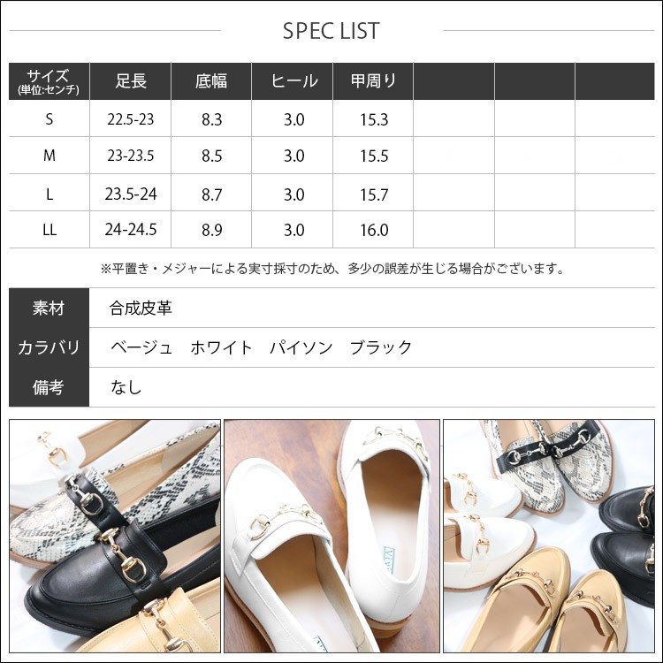 LL:足長 22.5-23cm 底幅 8.9cm ヒール 3.0cm 甲周り 16.0cm