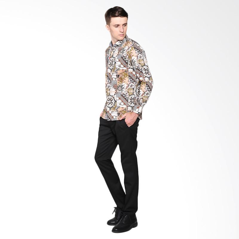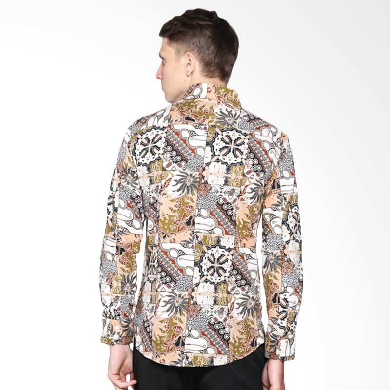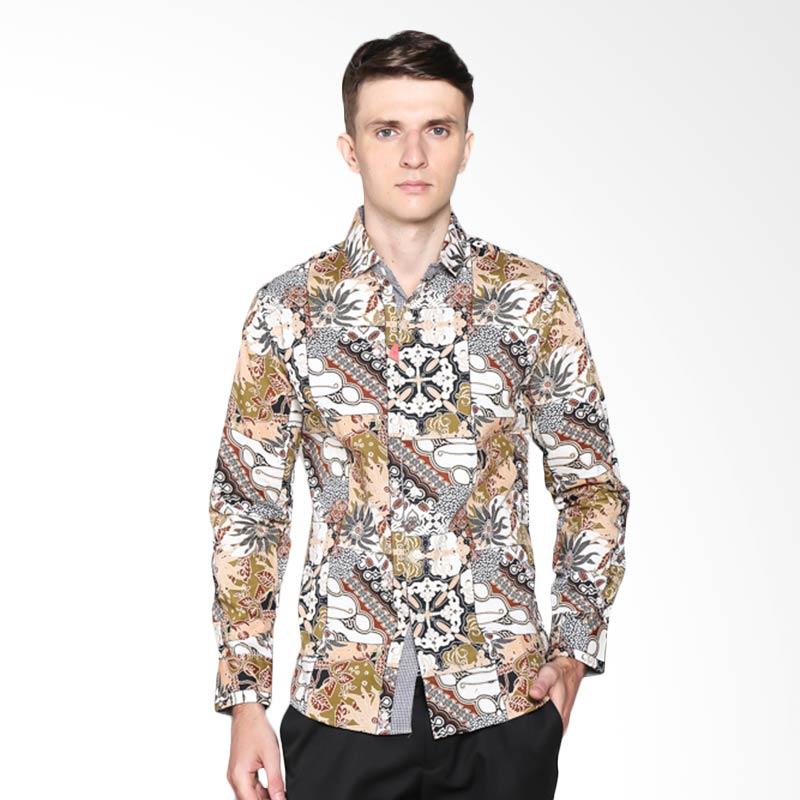 VM B-188 Slimfit Panjang Kemeja Batik - Cream Dark Brown