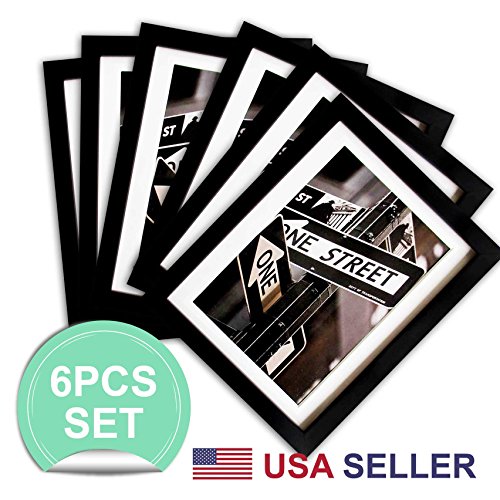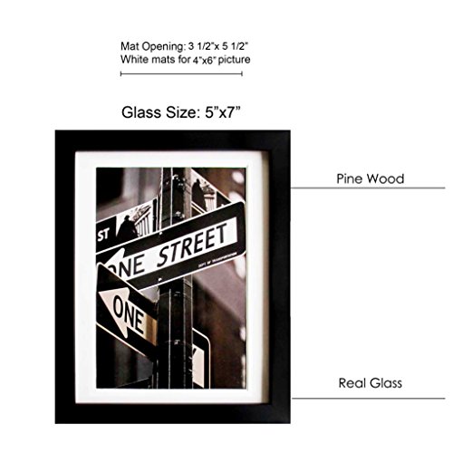 The Display Guys ~Luxury Made Affordable~ Real Glass 6 Piece Black Pine Wood Photo Decorative Frame Set, (6) 5”x7” frames With Mat Boards For 4x6 Picture
