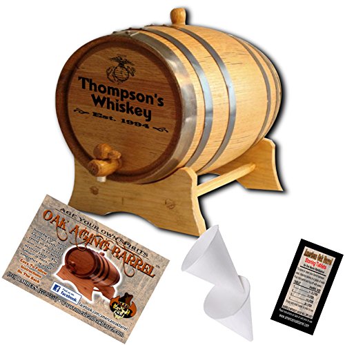 Studio : American Oak Barrel Publisher : American Oak Barrel Product Description This vessel is handcrafted from American white oak, bound by 6 hoops of steel and features a stunning laser engraved design! The barrel features a medium toast char. That char is the sugar from the oak released during the firing process. As it cools, the sugar caramelizes on the inner walls and mellows the decanted spirit. The longer your spirits age in this barrel the smoother, refined or mature it becomes. Accommodates approx. 4 fifths of spirit. Please enjoy responibly! 0