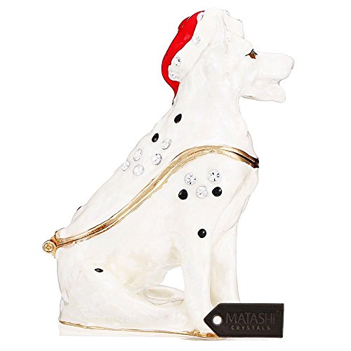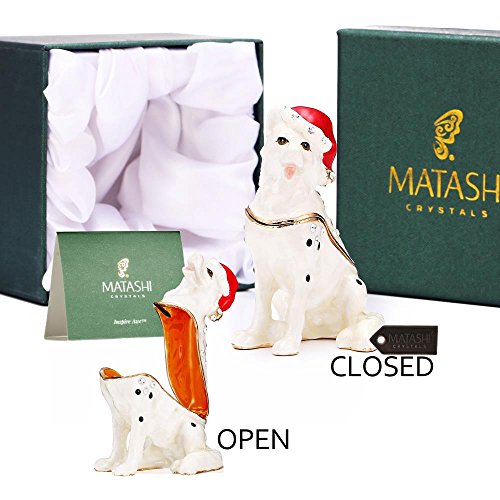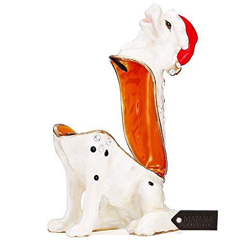 - Adorable Christmas Puppy – This small, cute puppy is hand-painted with snowy white and holiday red, as well as striking Matashi crystal “spots” on his smooth coat.