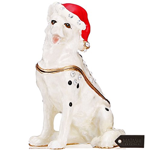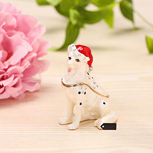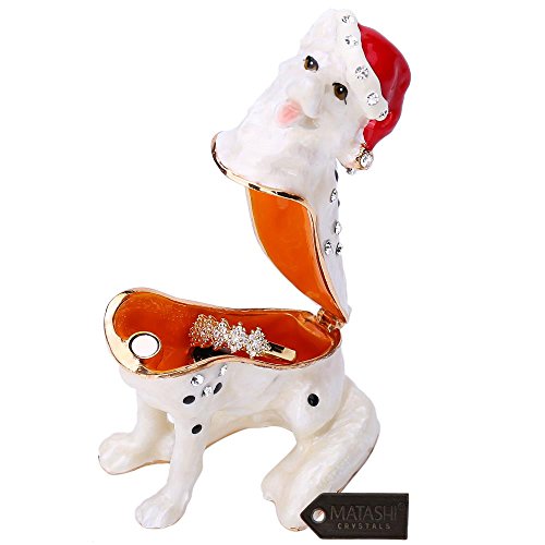 Hand-Painted Holiday Christmas Dog Trinket Box w/ Crystals | Decorative Christmas Puppy Ornament w/ Stocking Cap | Holiday Jewelry Holder | Store Rings, Necklaces, Earrings by Matashi