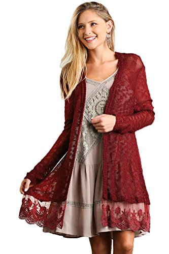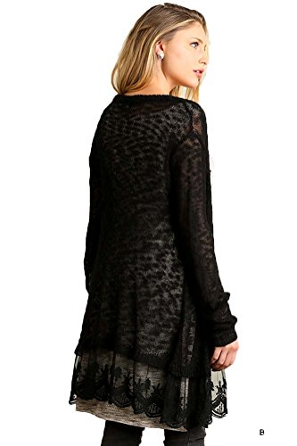 -. Binding : Apparel -. Brand : Umgee -. Color : Multi -. Department : womens -. Feature : beautiful long loose fitting open cardigan with lace trimmed hem / lightweight knit is perfect for spring and summer months / mid thigh length-29" shoulder to bottom hem / long sleeves- 24" from shoulder / style is loose fitting and unstructured, order normal misses size to achieve this fit -. Model : A9887 -. PackageQuantity : 1 -. ProductGroup : Apparel -. ProductTypeName : SWEATER -. Title : Umgee USA Women's Lightweight Lace Trimmed Open Cardigan Sweater