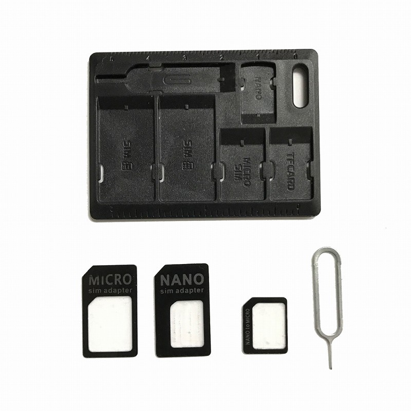 海外旅行にも財布に入るサイズなので旅行先でも安心のSIMカードホルダー。シムカード携帯するときの必需品です。 SIM 、 MicroSIM、 NanoSIM 各種シムカードがどれでも使える変換アダプタとイジェクトピンのセット 6.3cm x 4.6cm の小型サイズなので財布やキーケースに入れて管理できる。 何かと便利な5cmまで測れる目盛り付き シムピンが付いているので急な差し替えも安心です。 SIM変換アダプター付きカード型収納ケース ※端末及びSIMカードに不都合が生じた場合でも、補償はできませんのでご了承ください。