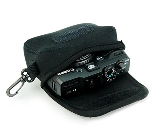 Black Flexible Neoprene Camera Protective Case Bag with Hook for Canon Powershot G10 G11 G12 G1X G15 G16 Sony DSC HX50