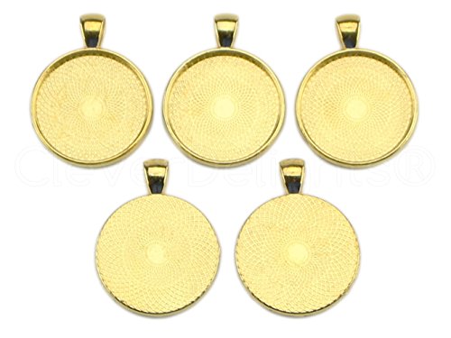 10 CleverDelights 1" Round Pendant Trays - Gold Color - 25mm - Pendant Blanks Settings