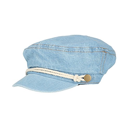 -. Binding : Apparel -. Brand : Dynamic Asia -. ClothingSize : One Size -. Color : Blue -. Department : womens -. Feature : One size fits most up to 22 inches / Metal buttons at side, cording at front / Back elastic band for fit / 6.5-inch wide brim / Lightweight -. Label : Dynamic Asia -. Manufacturer : Dynamic Asia -. ProductGroup : Apparel -. ProductTypeName : HAT -. Publisher : Dynamic Asia -. Size : One Size -. Studio : Dynamic Asia -. Title : Dynamic Asia Women's Washed Denim Fisherman Cabbie Hat
