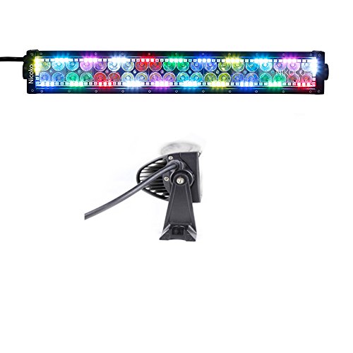Studio : Nicoko Publisher : Nicoko Product Description Specification 126w Straight led light bar with Chasing RGB Halo Ring by RF remote The halo ring was installed inside the led light bar ,which was protected by the lens,which can make it water proof very hardly. 50,000 hours average life span 94% optical/reflector efficiency 9-36 Volt DC input Instant on/off, no warm-up Operating Temp:-20~120degree Oversized heat sink Total Lumens:12000Lm Housing: Extruded Aluminum, Anodized, Laser Etched Power Consumption:126watts Emitter:3w Cree LED, 6000 Kelvin Package included 1x Remote Wiring harness kit 1x 126w led light bar with Chasing RGB Halo A set of Lighting Accessories Wide uses: Indoor and Outdoor uses Back up light Off Road Lighting Truck, Trailer Interior and Exterior Lighting Construction Lighting Garden, Backyard Lighting Boat Lighting ATV, vessels, bus, off-road vehicles, trucks, fire engines, forlifts, mining, trains, tanks, etc. 0