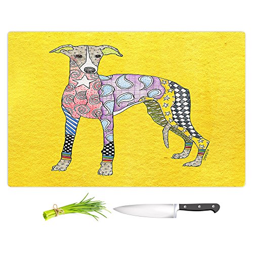 DiaNoche Designs CB-MarleyUngaroGreyhoundYellow1 Artist Marley Ungaro-Greyhound Yellow Cutting Boards from, Small 11" x 8"