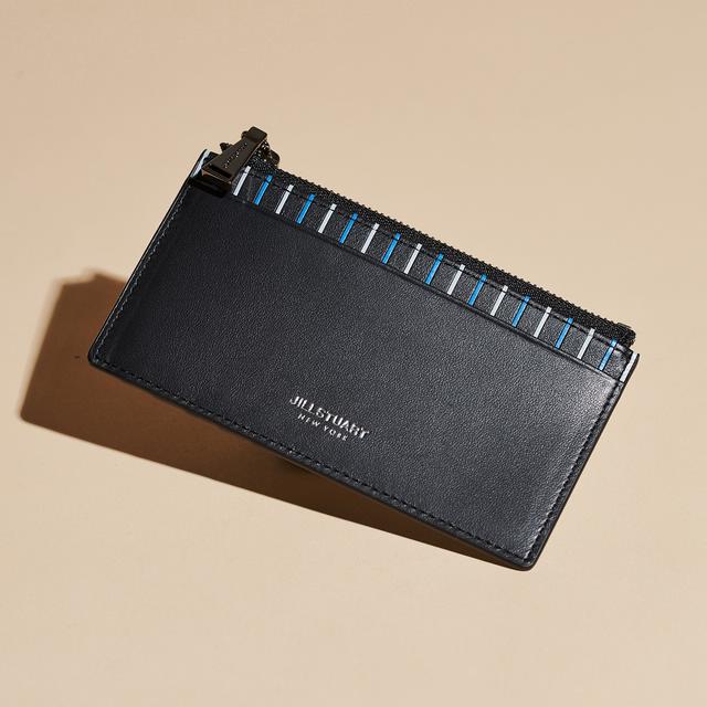 세련된 블랙 컬러 바탕에 스트라이프 패턴으로 포인트를 준 1단 장지갑입니다.