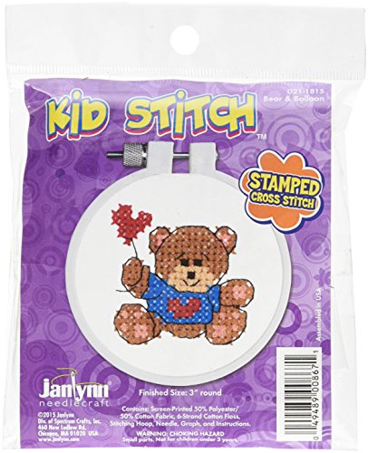 Janlynn Kid Bear & Balloon Stamped Cross Stitch Kit, 3"