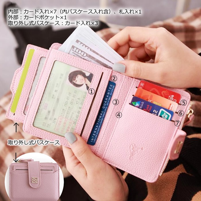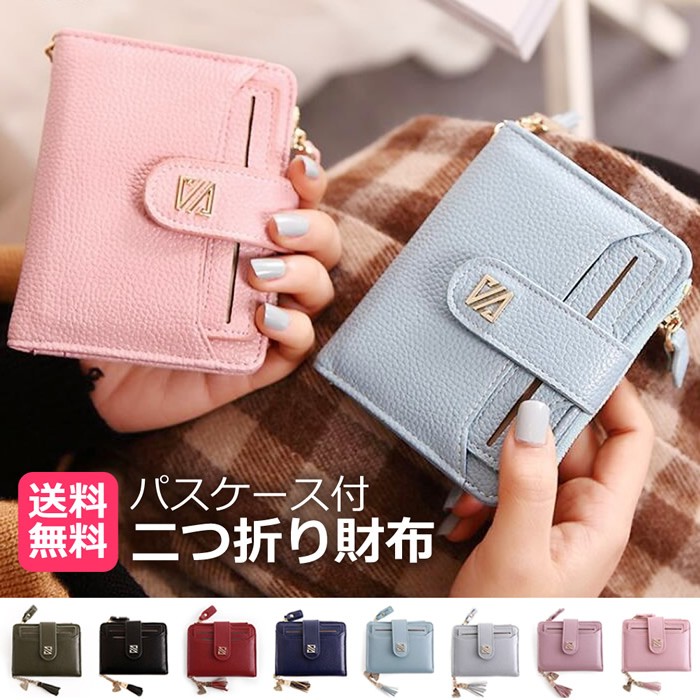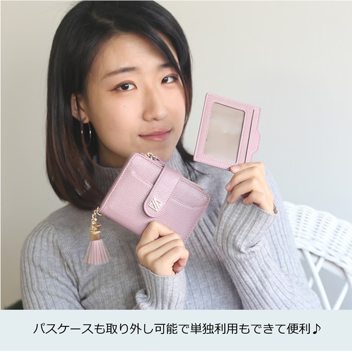 二つ折り財布 レディース ミニ財布パスケース付き ウォレット