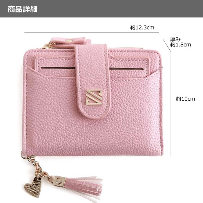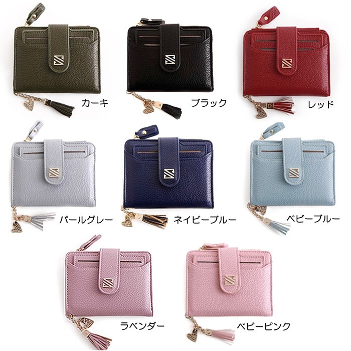 ★パスケース取り外し可能になっているので定期やICカードなどよく使うカードを収納できて便利♪ ★コンパクトながら、お札やカードもたっぷり入り、パスケースも別に使える優れもの♪★しっかりした素材で高級感ある作りの二つ折り財布 ★フリンジとハートのチャームがアクセントになって可愛い ★カラーバリエーションも選べる8color ★薄くて軽い100g ★コンパクトで、使いやすいサイズ!バッグの中でもかさばらない♪