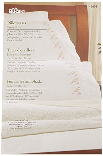 Bucilla Stamped Embroidery Pillow Case Pair Kit, 20 by 30-Inch, 45098 Pretty Posies
