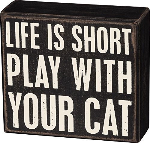 Primitives By Kathy "Life is Short Play With Your Cat" Box Sign