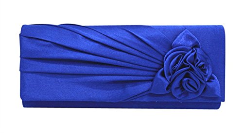 Chicastic Satin Clutch Purse With Satin Flowers Bridal Wedding Evening Party Clutch Purse - Royal Blue