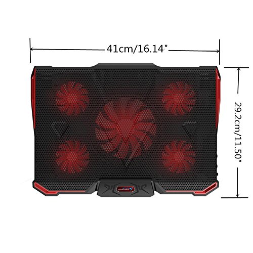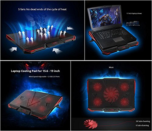 -. Title : Quiet Red Led Laptop Cooling Pad Noise-free Notebook Cooler Portable USB Air-cooled Cooling Fans for 15.6/17/18/19 inch Adjustable Cooler Stand