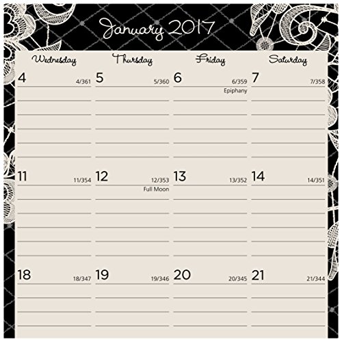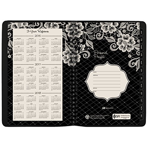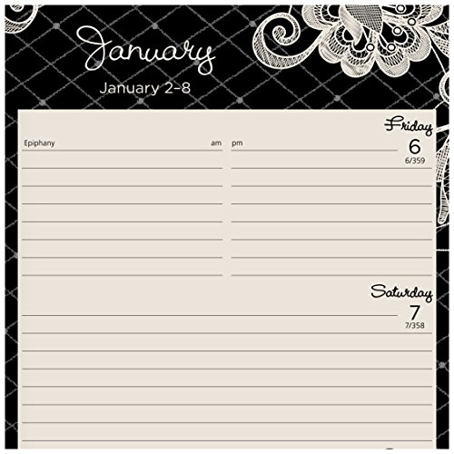 -. Feature : 13 months of weekly and monthly planning pages, one week/month per two page spreads, for a full year from January - January. Julian dates. / Ruled weekly spreads include planning space for both weekdays and weekends. Hourly appointments from 8:00 a.m. - 5:00 p.m. / Monthly spreads also feature ruled blocks for neat writing and tabs for quick page turning / Notes space plus past and future months reference on each two-page spread / Special pages: holiday listing, 3 year (past, current, and future) reference calendars, event calendar, contacts, notes, and future planning pages for next year. P.R.Inted on quality paper that resists ink bleed and contains 30% post-consumer waste. 5.5 in. x 8" page size.