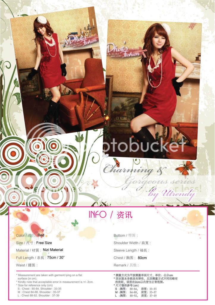 D0082 - Elegant Lover - Deep V-neck Flower Dress ( Red )