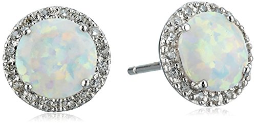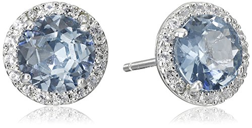 -. Title : Sterling Silver Gemstone and Created White Sapphire Stud Earrings