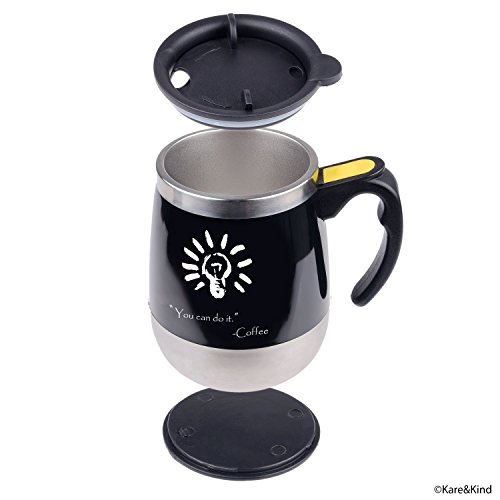 Self stirring coffee mug - Automatic mixing stainless steel cup - To stir your coffee, tea, hot chocolate, milk, protein shake, bouillon, etc. - Ideal for office, school, gym, home - 400 ml / 13.5 oz
