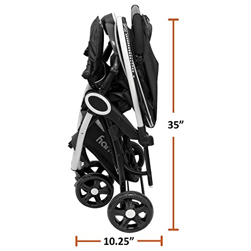 -. Feature : 1-hand, 3-position reclining seat including carriage mode / Extra-large weather-shield canopy with top and side peek-a-boo windows / 1-hand, self-standing, quick fold