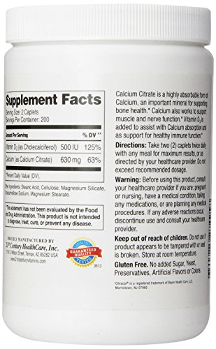 -. Binding : Health and Beauty -. Brand : 21st Century -. Feature : Highly absorbable to support bone health / Compare active ingredients to Citracal +D Maximum / No added Sugar, Yeast, Preservatives, Artificial Flavors or Colors / Gluten free / Value size -. Label : 21st Century -. Manufacturer : 21st Century -. MPN : cit456 -. PartNumber : cit456 -. ProductGroup : Health and Beauty -. ProductTypeName : HEALTH_PERSONAL_CARE -. Publisher : 21st Century -. Studio : 21st Century -. Title : 21st Century Calcium Citrate Plus D Maximum Caplets, 400 Count