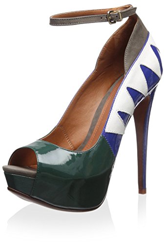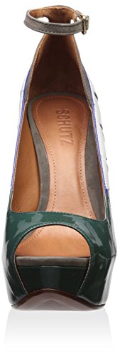Schutz Women's Platform Peep Toe Pump With Ankle Strap, Jade, 7 M US