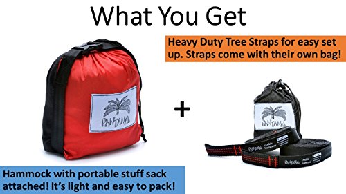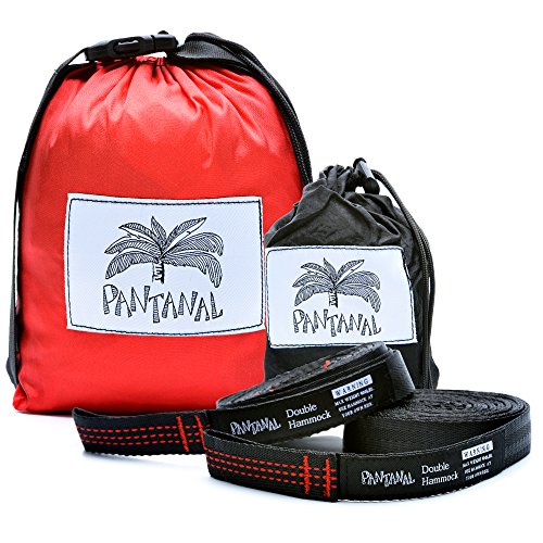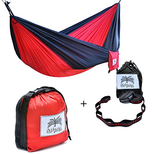Double Nylon Hammock with Tree Straps, Camping Portable Parachute Hammock, Lightweight, for Backpacking, Travel, Camping, Heavy Duty, High Capacity 500 lbs, By Pantanal