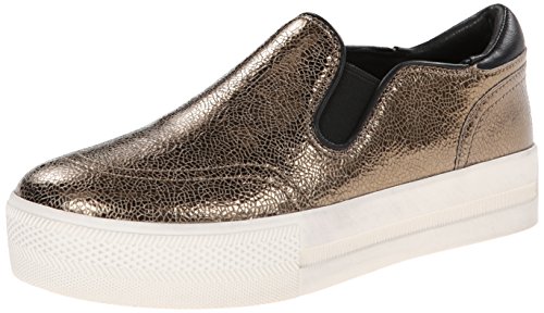Flatform slip-on sneaker featuring piped edging and elastic goring at vamp