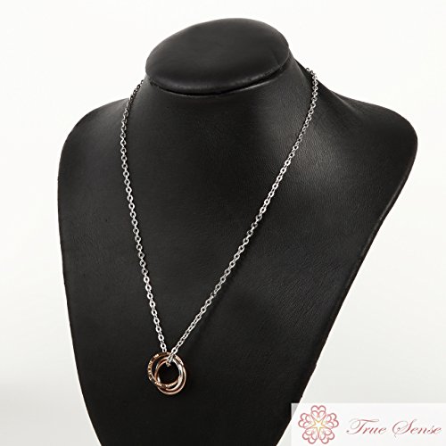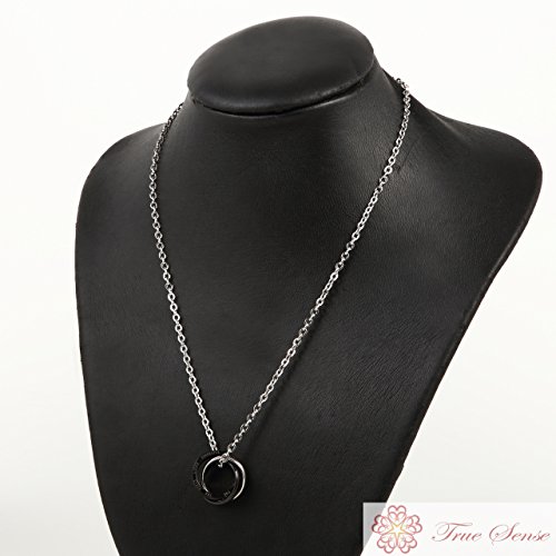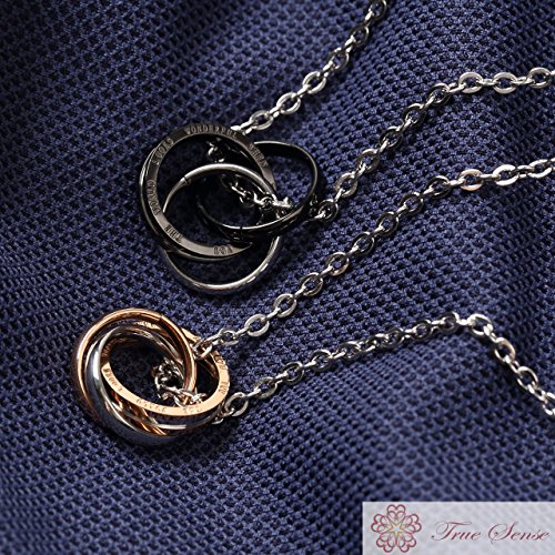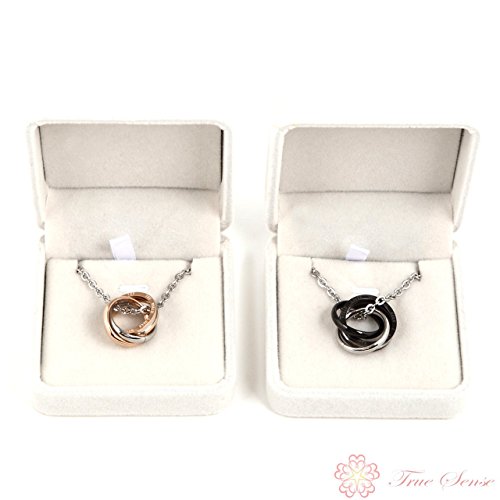 [TrueSense The pair necklace set triple ring Black & Pink gold stainless steel jewelry BOX & care for cloth and gift paper pouch set (T702)