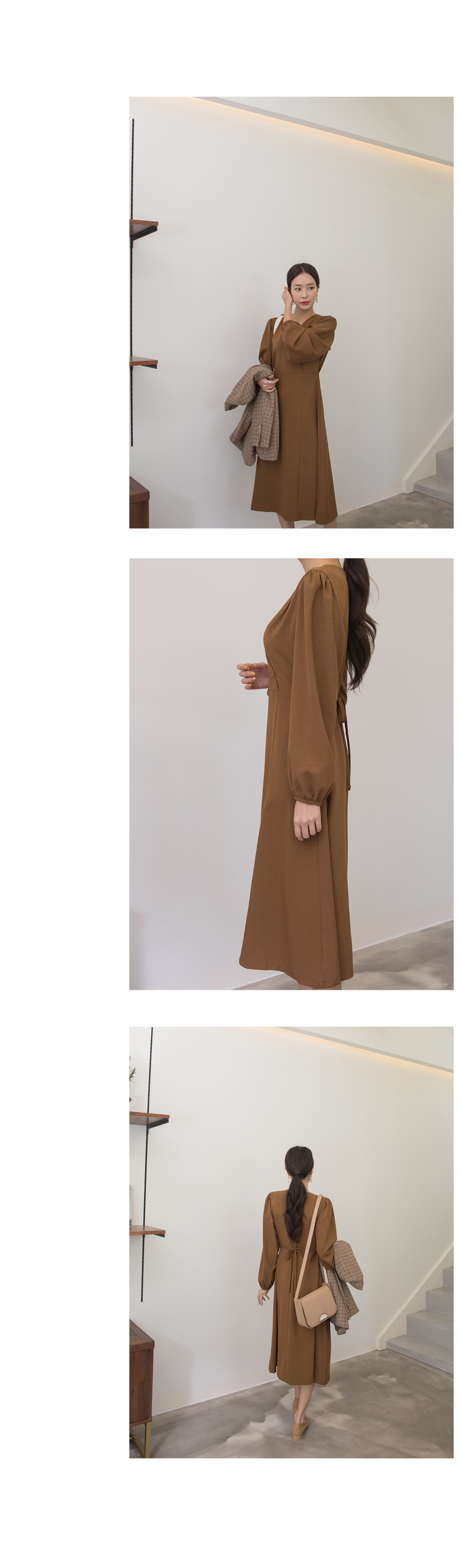 스트랩으로 체형에 맞게 묶어주어 슬림한 라인 연출이 가능하구요~