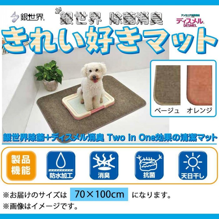 | 除菌力に優れた除菌繊維である「銀世界(R)」と、ペット臭やトイレなどのアンモニア臭を吸着し消臭する繊維である「ディスメル(R)」を使用したペット用マットです。裏面の特殊加工により、吸収した水分を床に漏らすことがありません。吸収・消臭効果は天日干しや洗濯によって回復、いつでも清潔な状態でお使いいただけます。 |