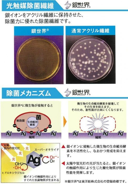 | 素材・材質 | 表面:エステル、銀世界(R)、東洋紡ディスメル(R)・承認No.JP-218H 裏面:ポリウレタン 縁:コットン |