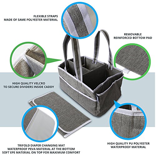 Studio : Virtual Stores Publisher : Virtual Stores Binding : Baby Product Product Description Bellizzi Diaper Caddy - For a stress free diaper changing experience That's Right! No more scrambling for diapers and baby lotion, no more dirty furniture and sheets. Organize and store all the baby supplies you need to change your baby's diaper! The Bellizzi Diaper Caddy is 13" long, 9" wide and 7" tall. With a total of 11 pockets and 3 compartments its efficiently manages to store all your baby supplies and is still portable enough to take it with you for your next outing. When the baby wets its diaper and is crying its lungs out, it's much easier to bring the diaper changing station to your baby than taking your baby to the diaper changing station. This portable Diaper Caddy with Changing Mat is the perfect solution. Your baby is going to wet its diaper regardless of where you are, your living room, study room, bed room, in your car or at your picnic. You do not want to go without being prepared. The Bellizzi Diaper Caddy makes this stressful ordeal into a short and calm experience. The changing mat provided along with the diaper caddy organizer lets you convert any smooth surface to a quick diaper changing station. Unlike the many cloth and felt diaper caddies in the market The Bellizzi Diaper Caddy is waterproof and stain resistant. You can easily wipe clean the caddy with a baby wipe! No more scrubbing! Another main concern the Bellizzi Diaper Caddy deals with is the sturdiness of the Caddy. With a reinforced removable bottom pad and dividers the diaper caddy organizer maintains its shape even when you carry it around, the deep and snug pockets provide great support and ensures the contents inside do not fall out. The last thing you need is half your supplies flying out when you are in a rush. Add The Bellizzi Diaper Caddy with Changing Mat to your Cart and enjoy a stress free diaper changing experience! With a 100% Money Back Guarantee, You Just Can't Go Wrong!